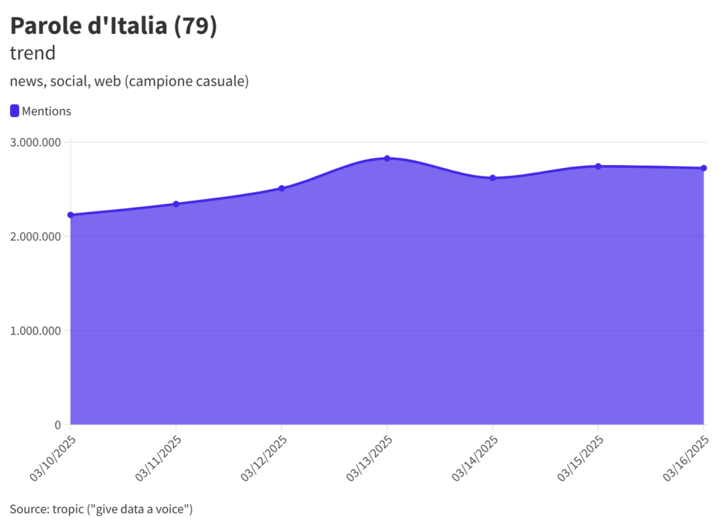 Come ogni settimana, Parole d’Italia offre anche un approfondimento sui ๐ญ๐ฌ.๐ฌ๐ฌ๐ฌ ๐บ๐ฒ๐๐๐ฎ๐ด๐ด๐ถ che hanno generato il maggior numero di interazioni. Le informazioni:
