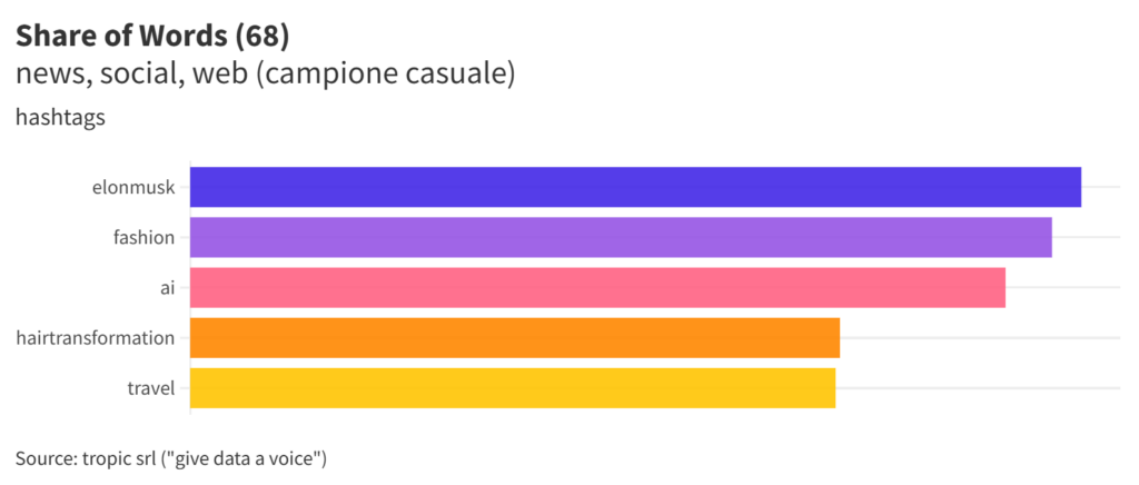 L’analisi semantica di un campione casuale di 1 miliardo di messaggi pubblicati nell’๐๐ฃ๐๐ค๐จ๐๐๐ง๐ ๐๐ฃ๐ฉ๐๐ง๐ฃ๐๐ฏ๐๐ค๐ฃ๐๐ก๐ di lingua inglese (๐ฃ๐๐ฌ๐จ, ๐จ๐ค๐๐๐๐ก, ๐ฌ๐๐).